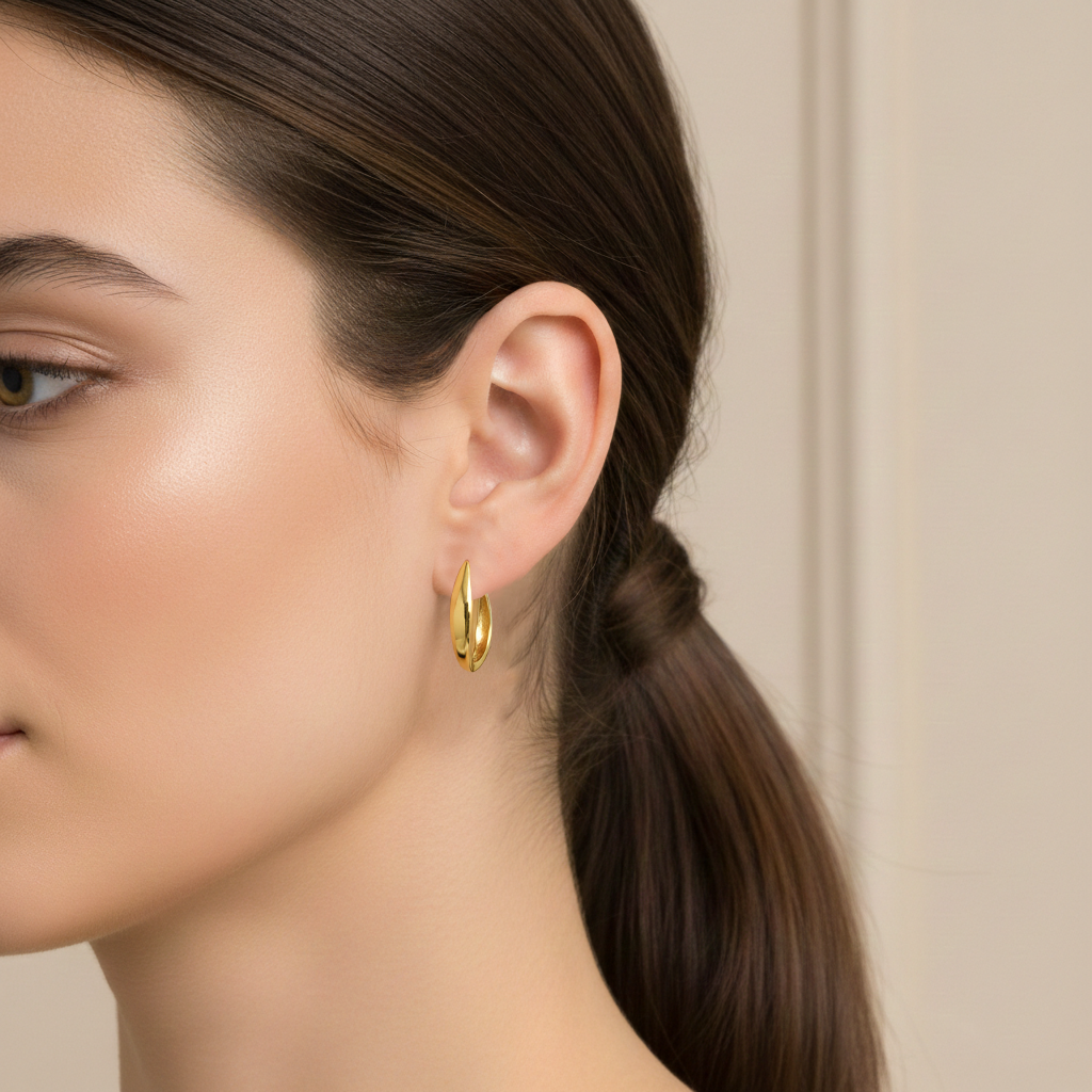 Klasik halka küpe formuna modern bir dokunuş katan markiz tasarımıyla öne çıkan bu özel model, zarif ve minimal yapısıyla günlük şıklığı tamamlar.