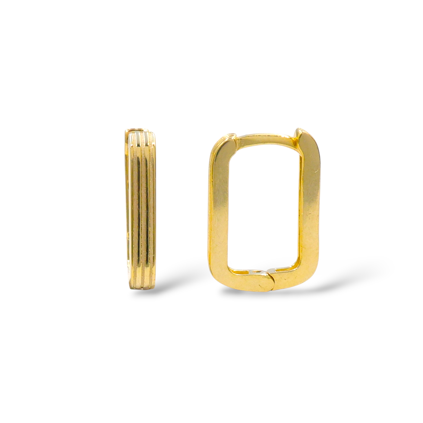 📐 Geometrik Form: Klasik halka küpelere modern bir yorum getiren, estetik Kare Kesim tasarım.