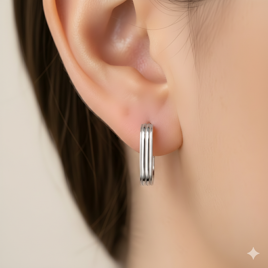 925 Ayar Gümüş Üç Çizgili Modern Kare Halka Küpe