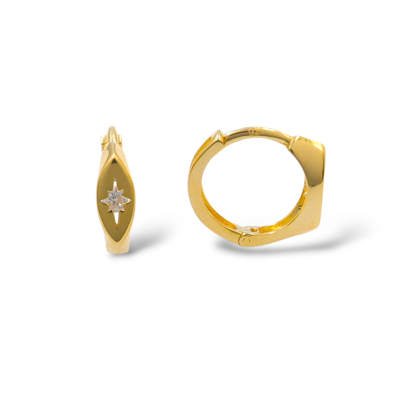 Gökyüzünün ışıltısından ilham alan bu yıldız detaylı halka küpe, zarif ve modern tasarımıyla dikkat çeker.