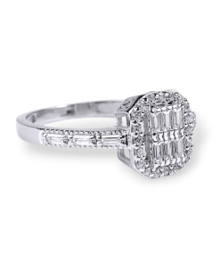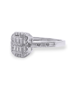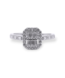 Sevdiklerinize zarif ve şık bir hediye arıyorsanız bu baget taşlı gümüş yüzük mükemmel bir seçenektir.