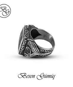 Mineli Tuğralı Gümüş Erkek Yüzük