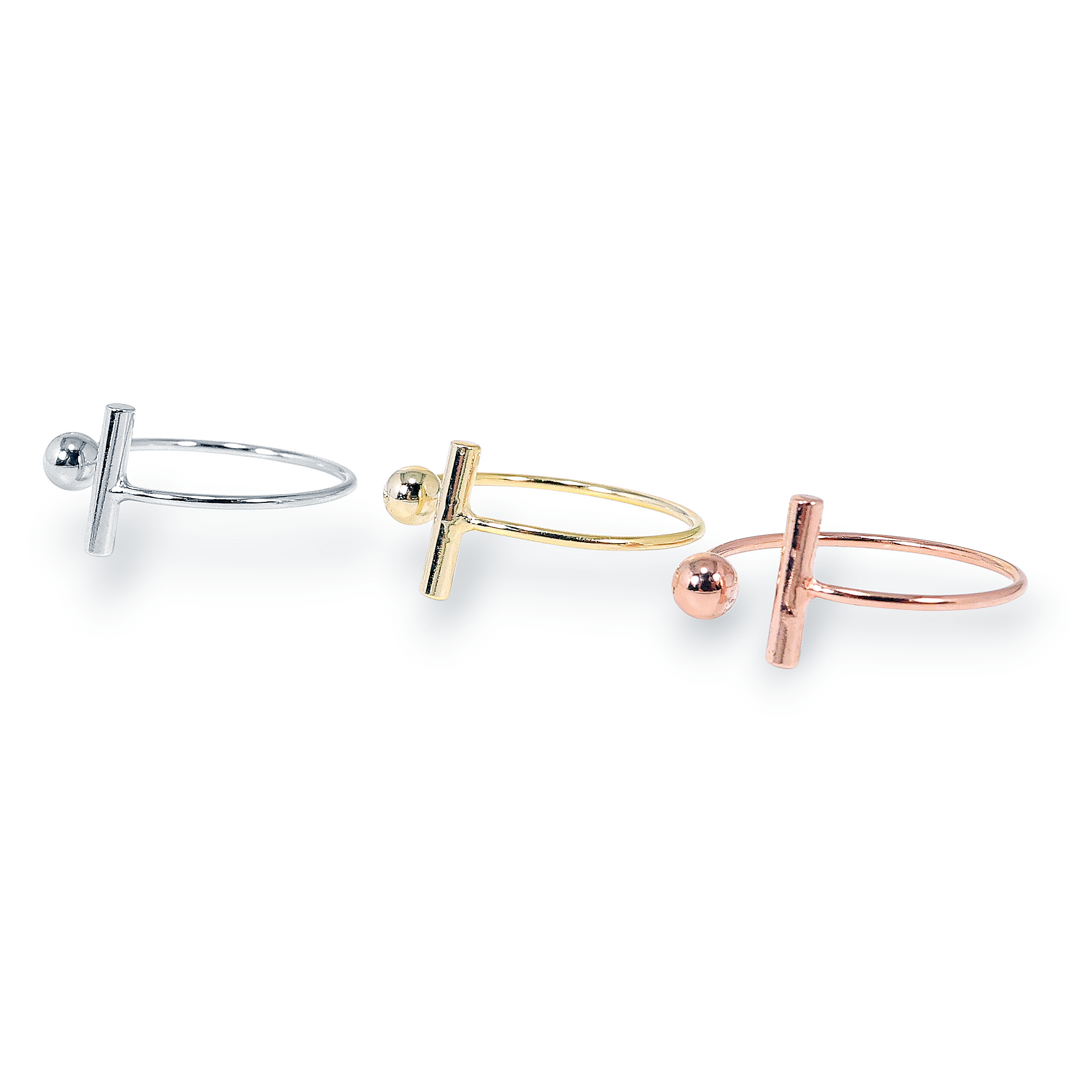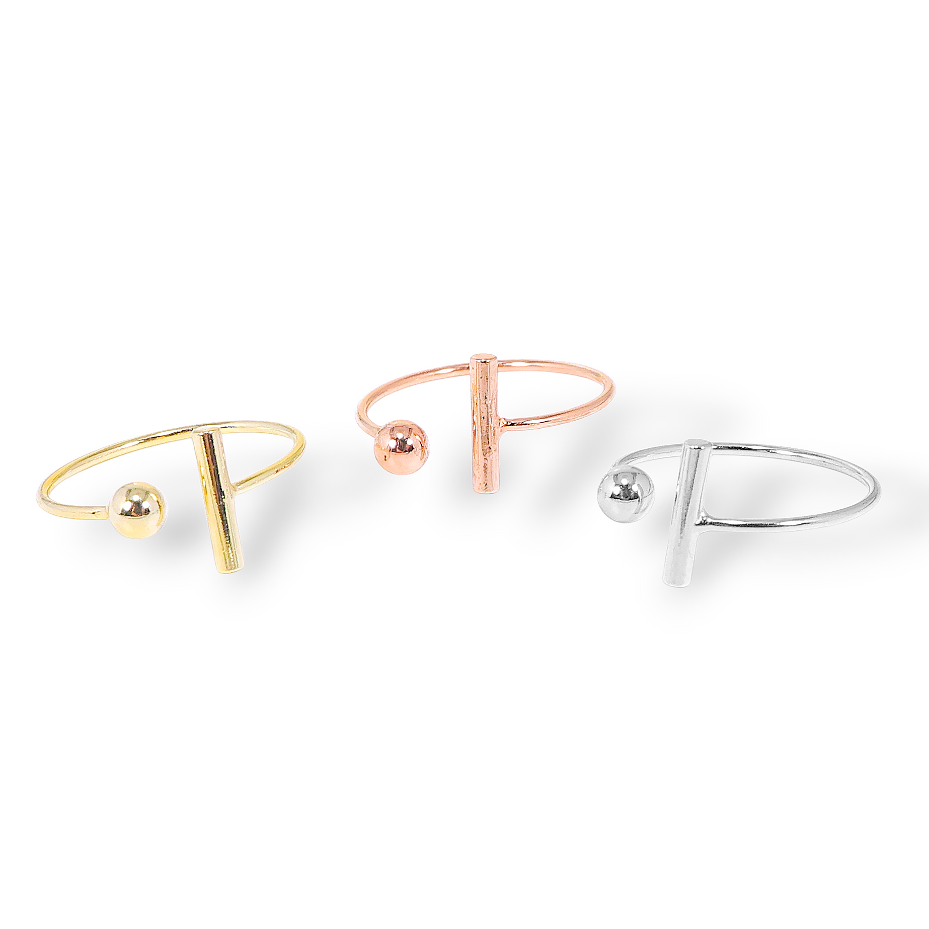 Minimal Geometrik Top Detaylı 925 Ayar Gümüş Yüzük – Sarı, Rose ve Beyaz