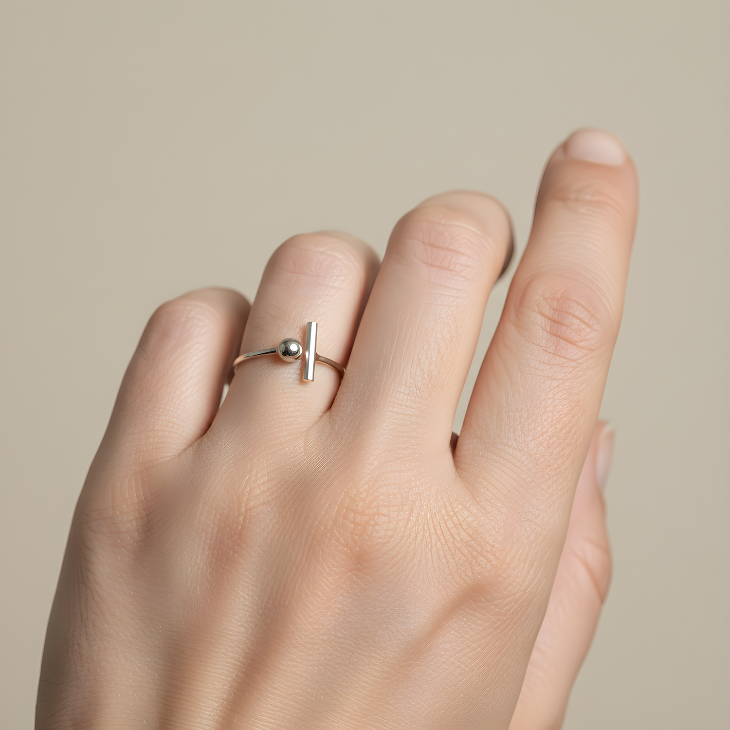 Modern çizgileri ve geometrik formu ile tasarlanan bu 925 ayar gümüş yüzük, minimal stilin güçlü temsilcilerinden biridir.