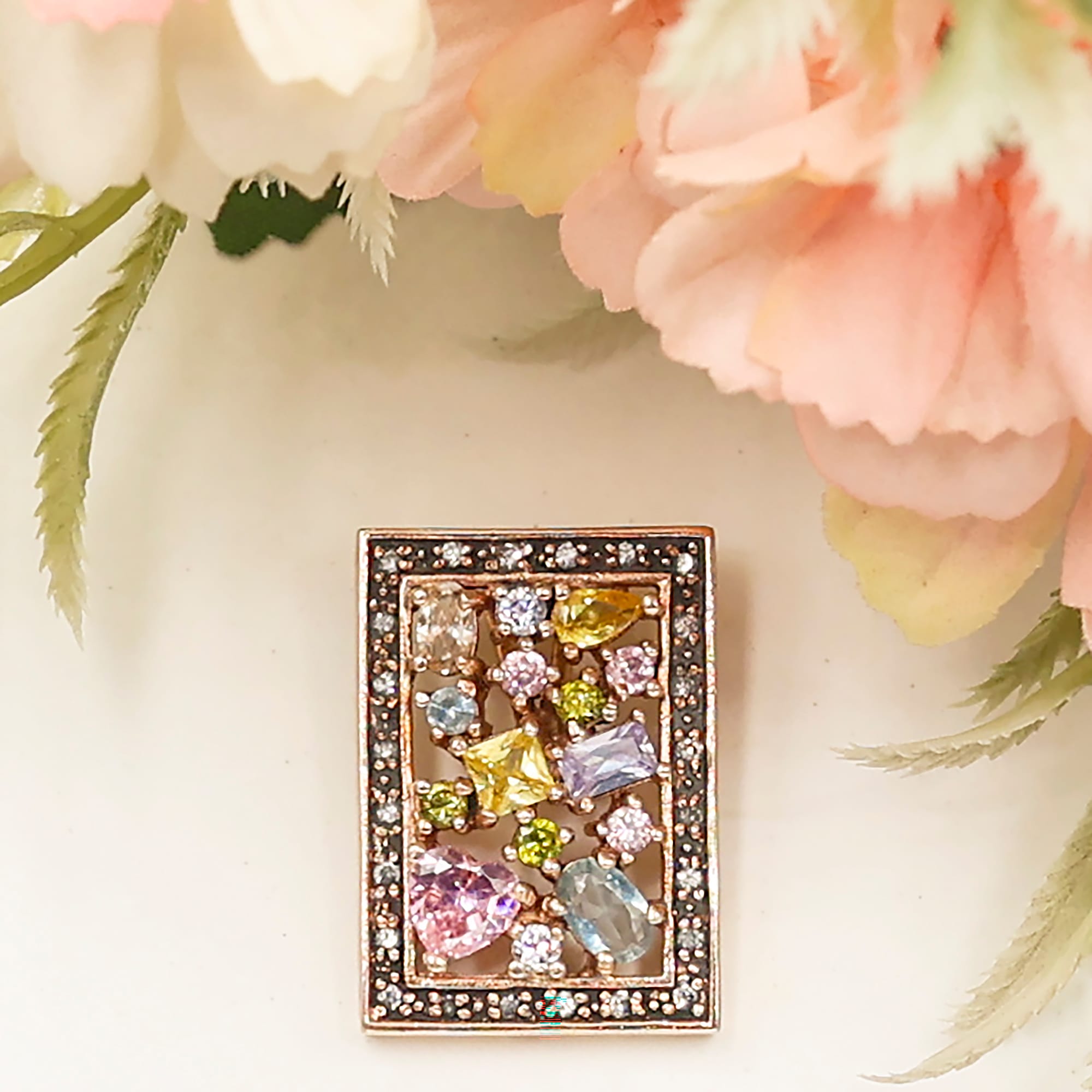 Renkli Zirkon Taşlı Dikdörtgen Kolye