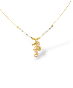 Rutil Kuvars Taşlı Mine Detaylı Deniz Atı Kolye – 925 Ayar Gümüş Altın Kaplama