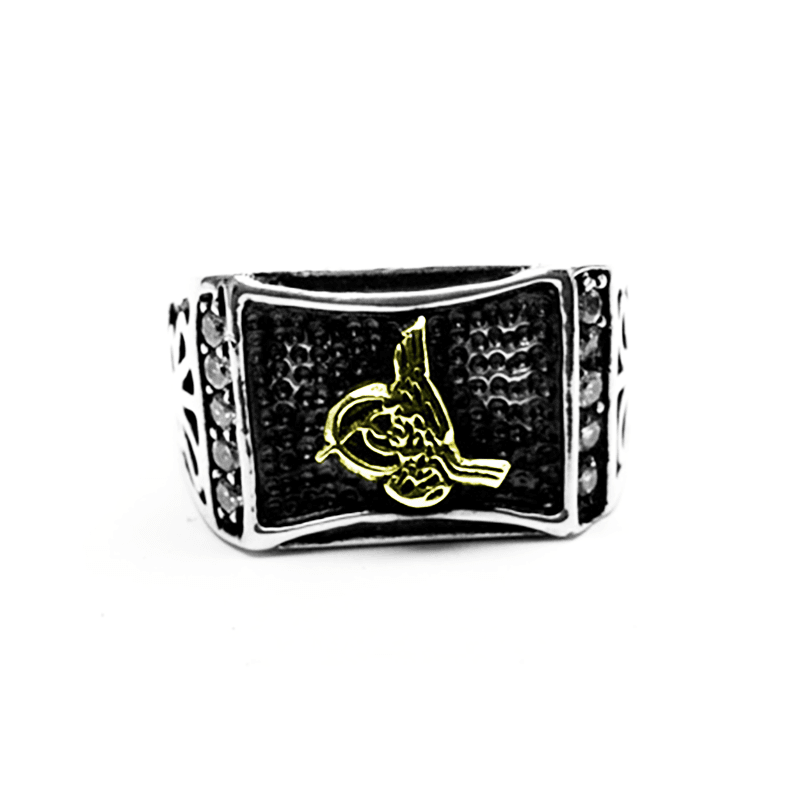 Tuğra Motifli Zirkon Taşlı Erkek Yüzük
