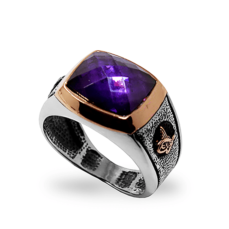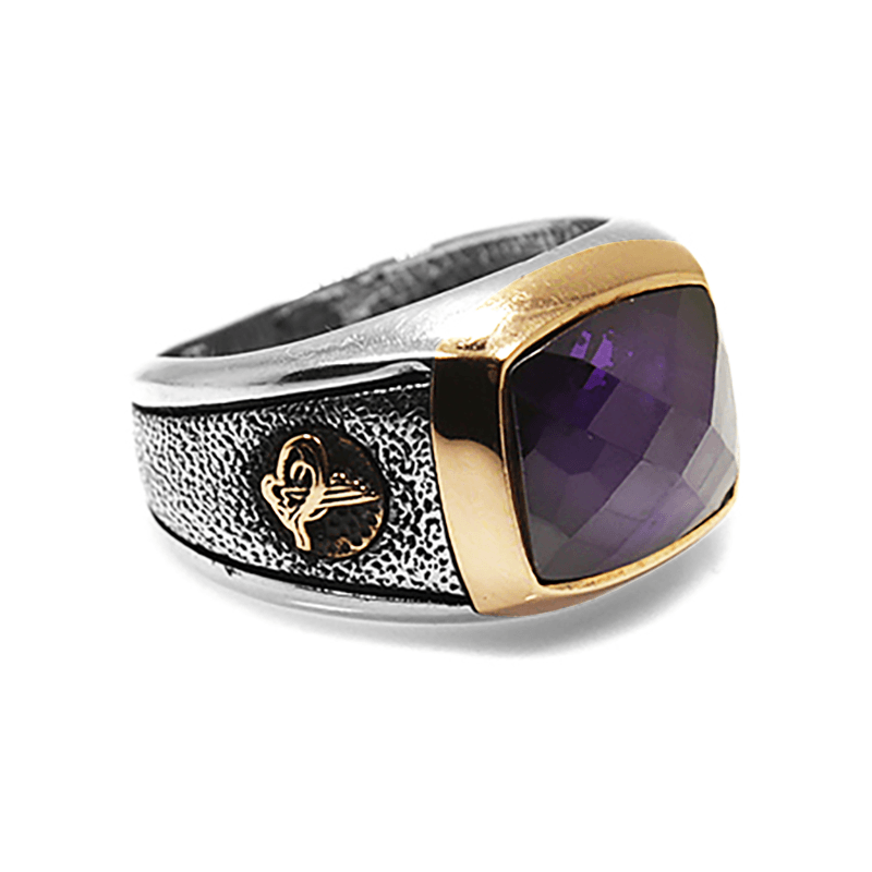 Ametist Taşlı Kenarları Tuğralı Yüzük..