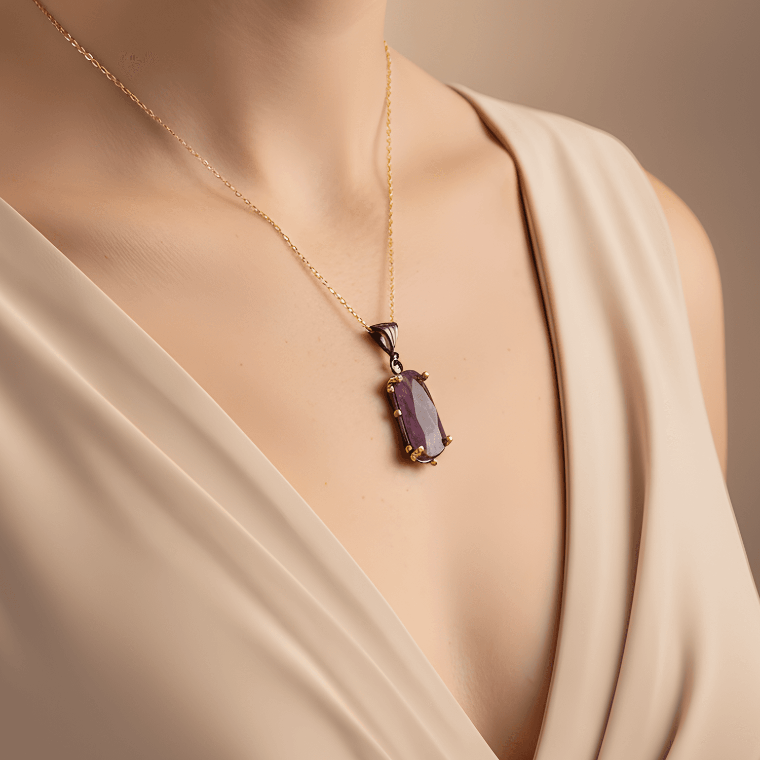 Doğal taşın zarafetini modern tasarımla buluşturan bu özel kolye, merkezinde yer alan kırmızı safir taşı ile dikkat çekici ve şık bir görünüm sunar.