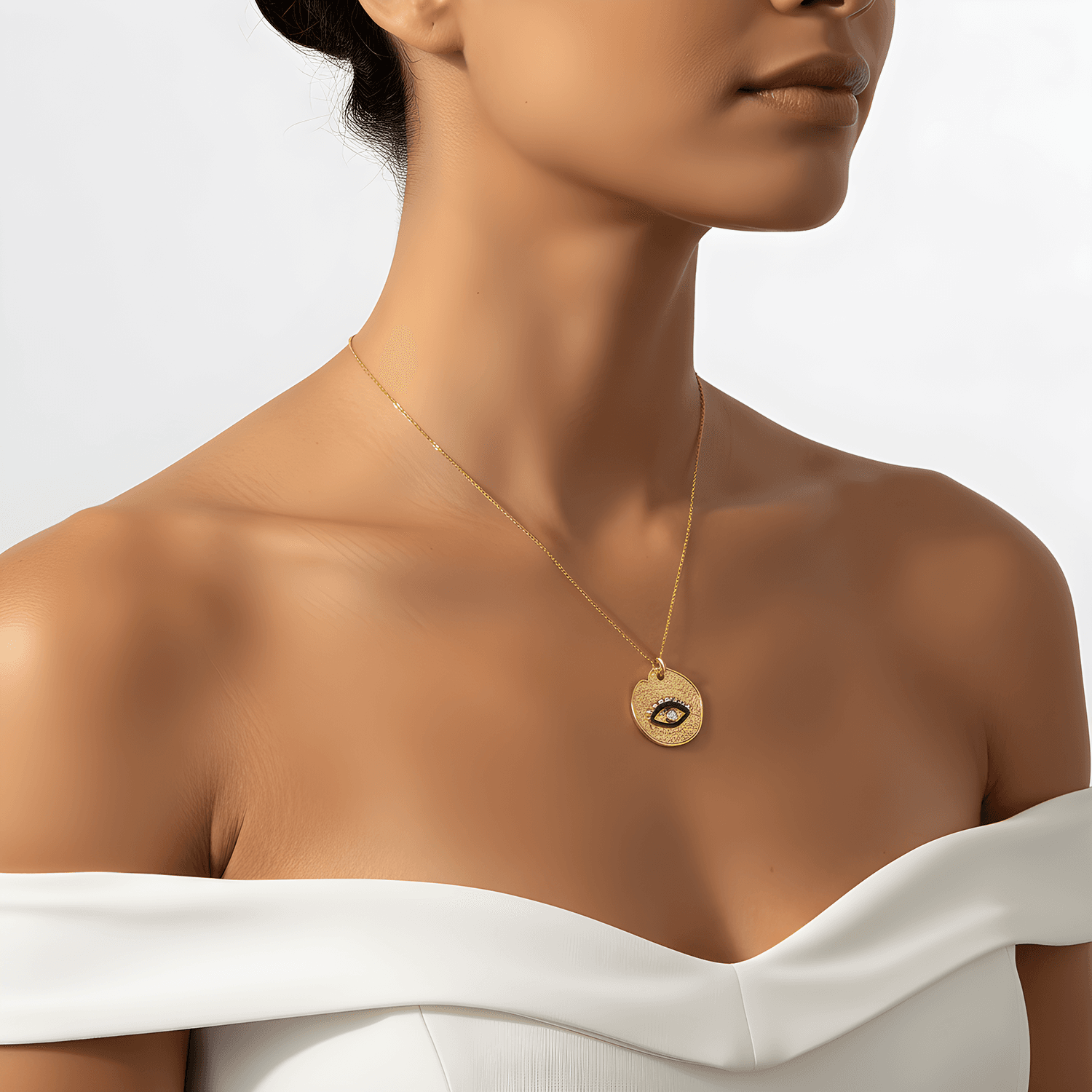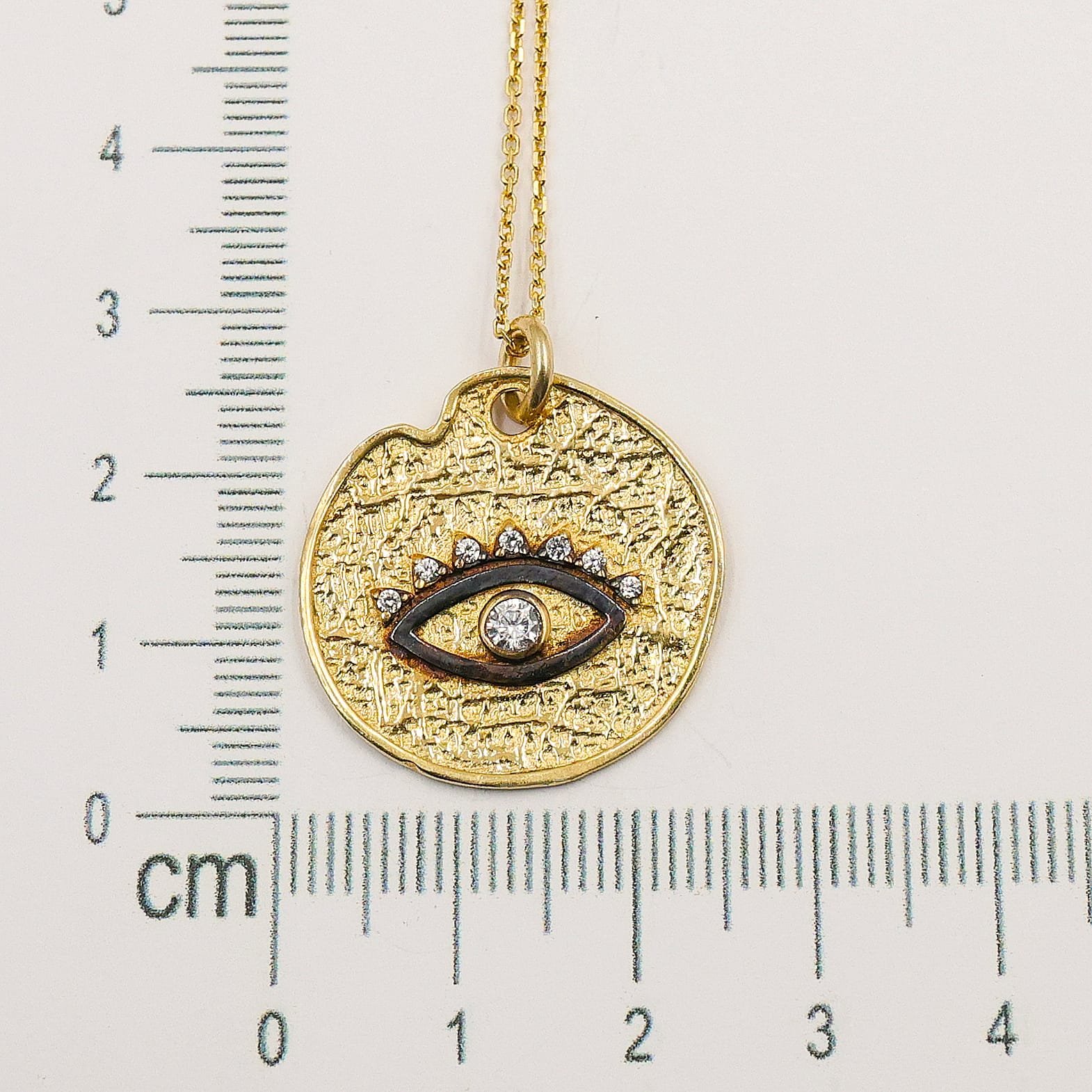 Göz Motifli Gümüş Kolye – Sarı Altın Kaplama Siyah Rodaj Detaylı Nazar Kolye