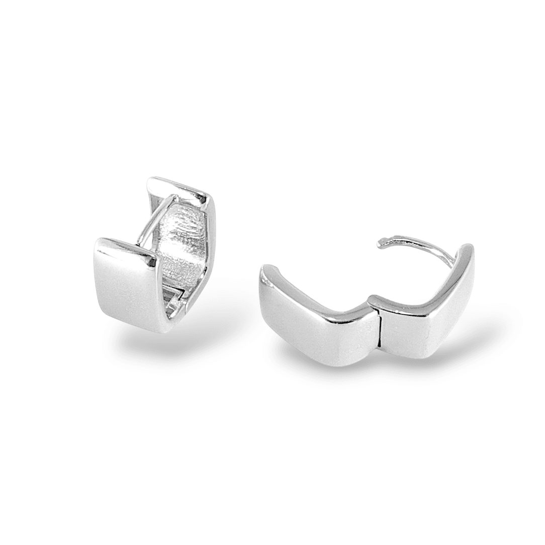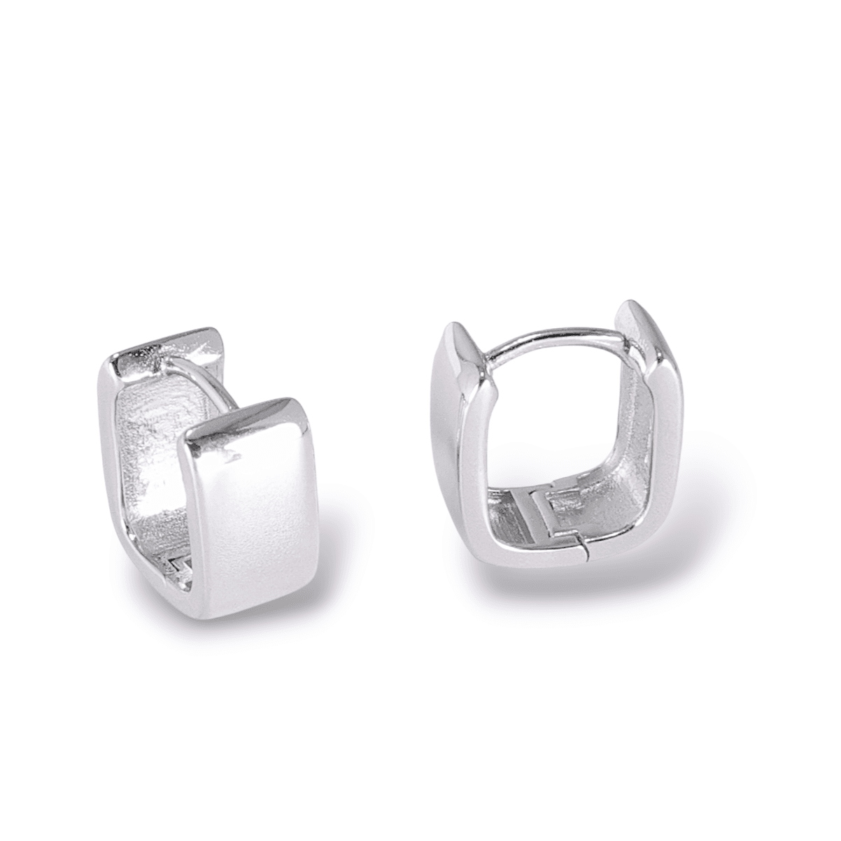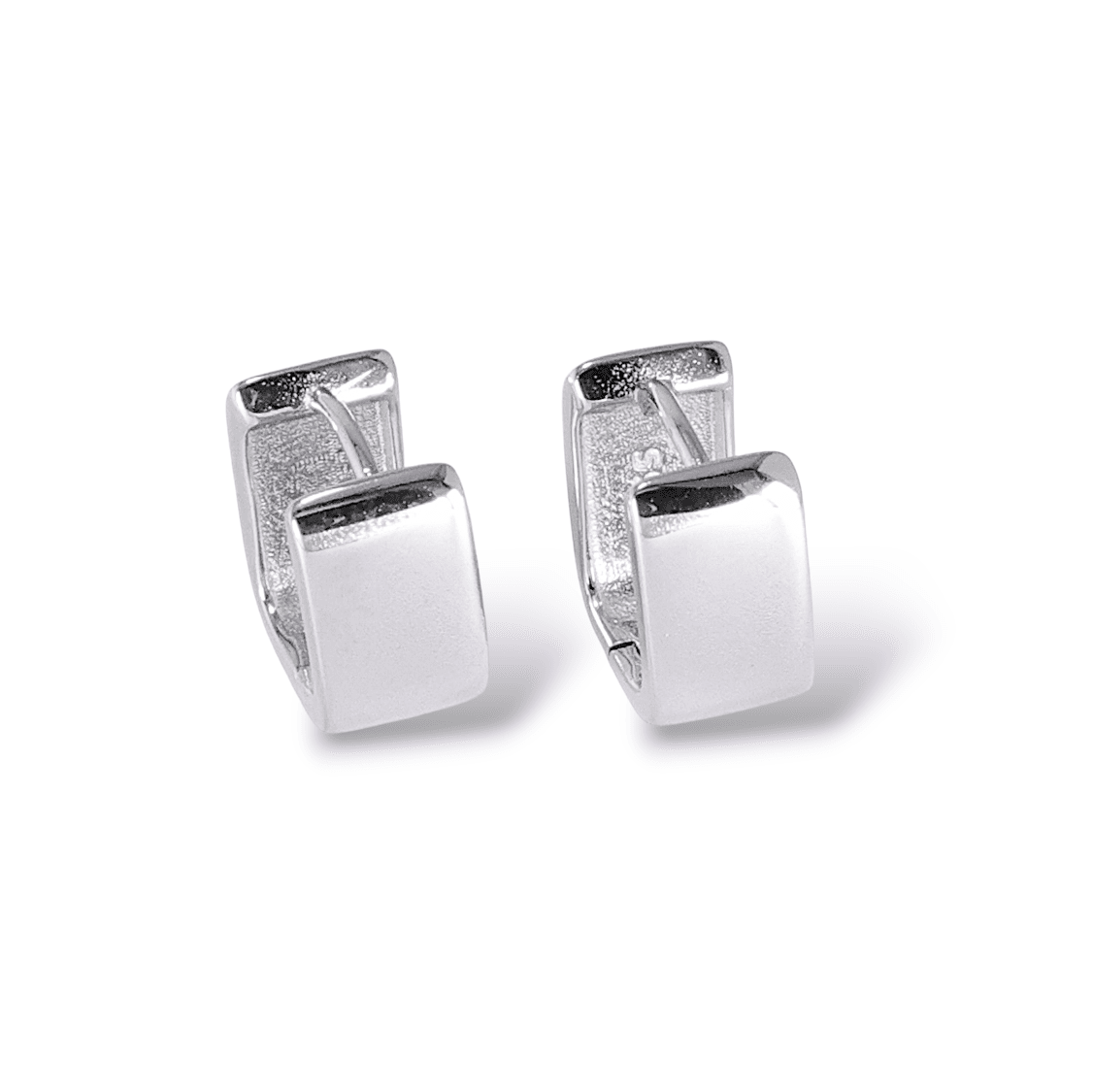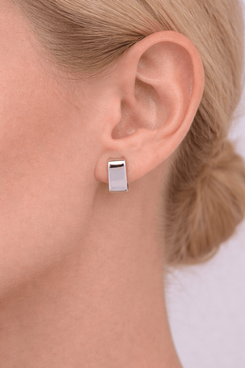 Modern ve geometrik çizgileriyle öne çıkan bu dikdörtgen halka küpe, klasik halka modellerine çağdaş bir yorum getirir.