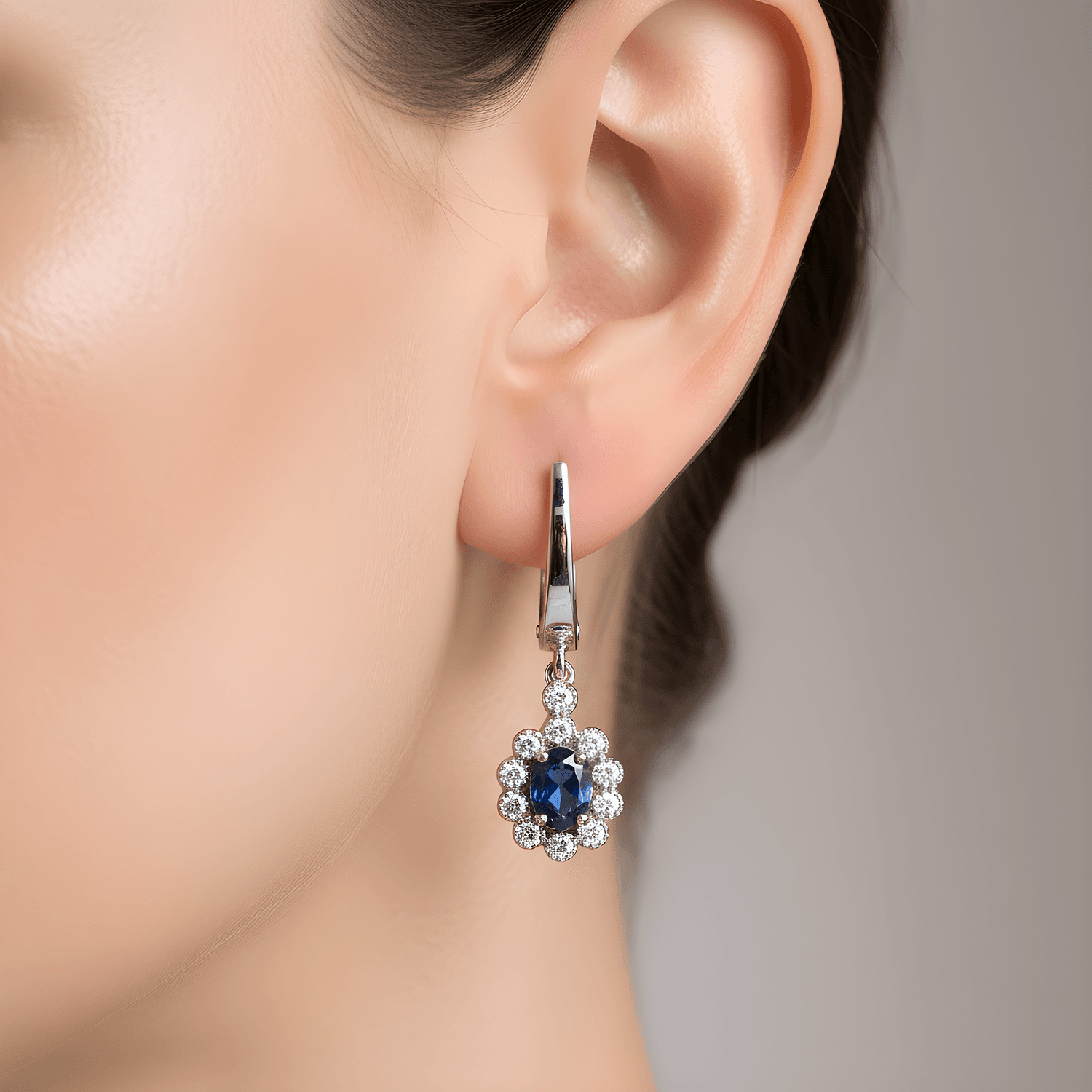 Safir Görünümlü Mavi Taşlı Zirkon Detaylı 925 Ayar Gümüş Takı Seti