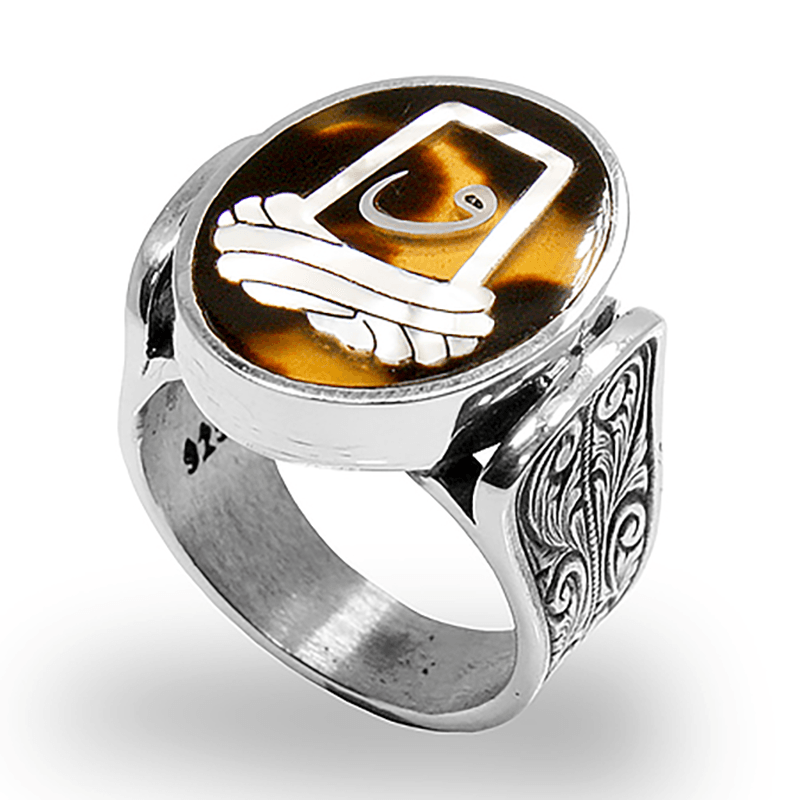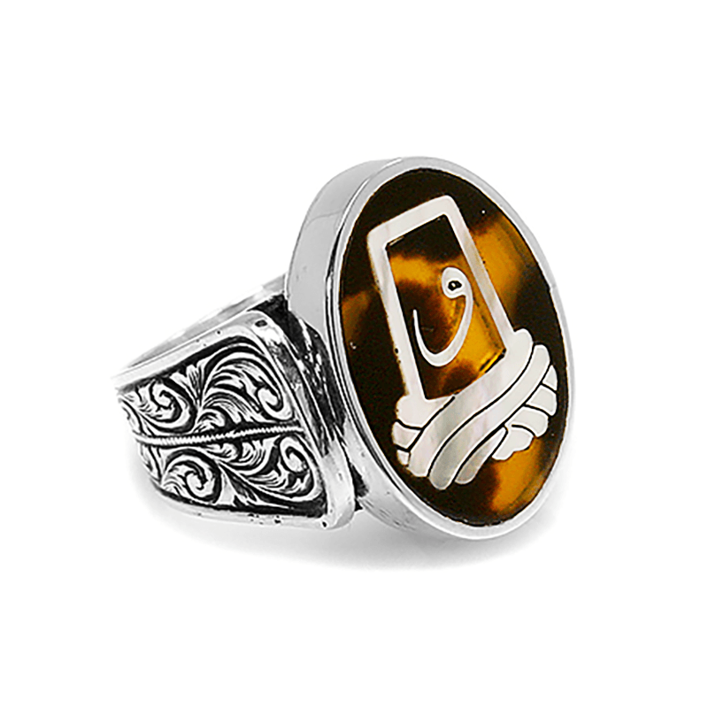 Sedef Kakma Arakiyye İçinde Vav Harfli El İşi Yüzük