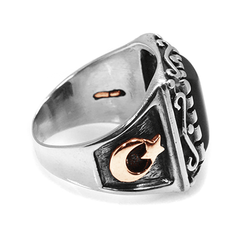 Siyah Taşlı Kenarları Ay Yıldız Motifli
