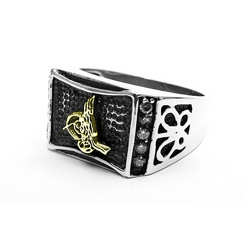 Tuğra Motifli Zirkon Taşlı Erkek Yüzük
