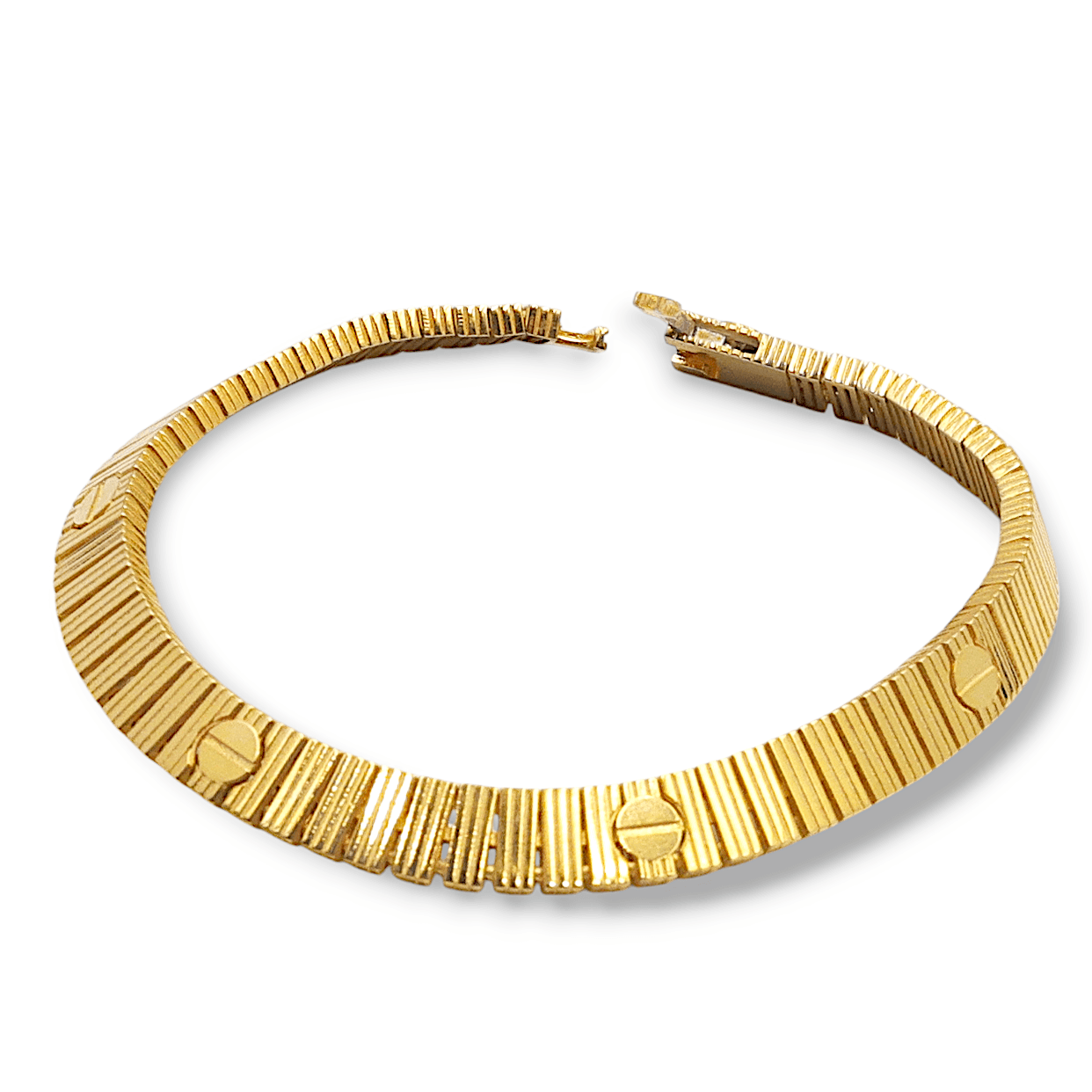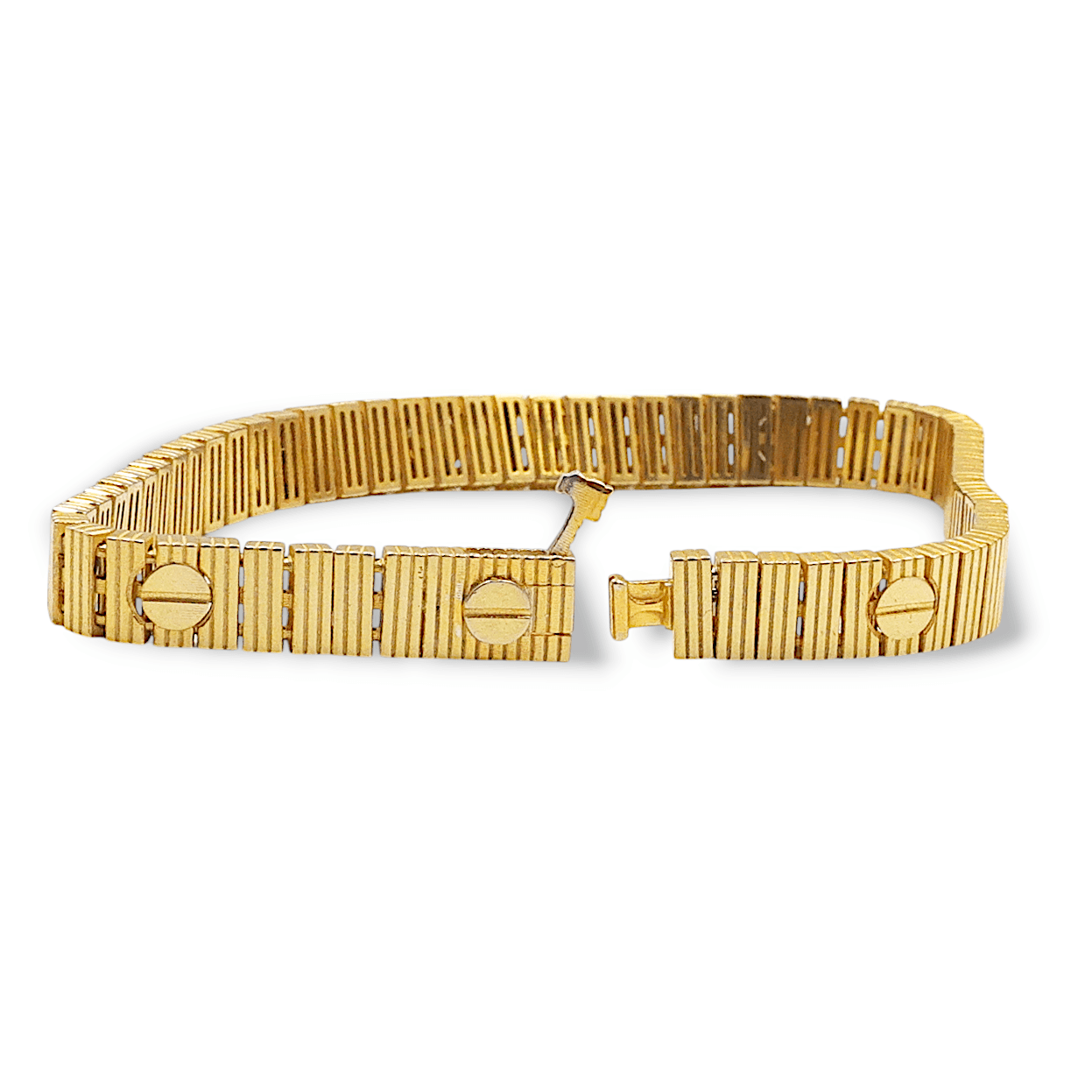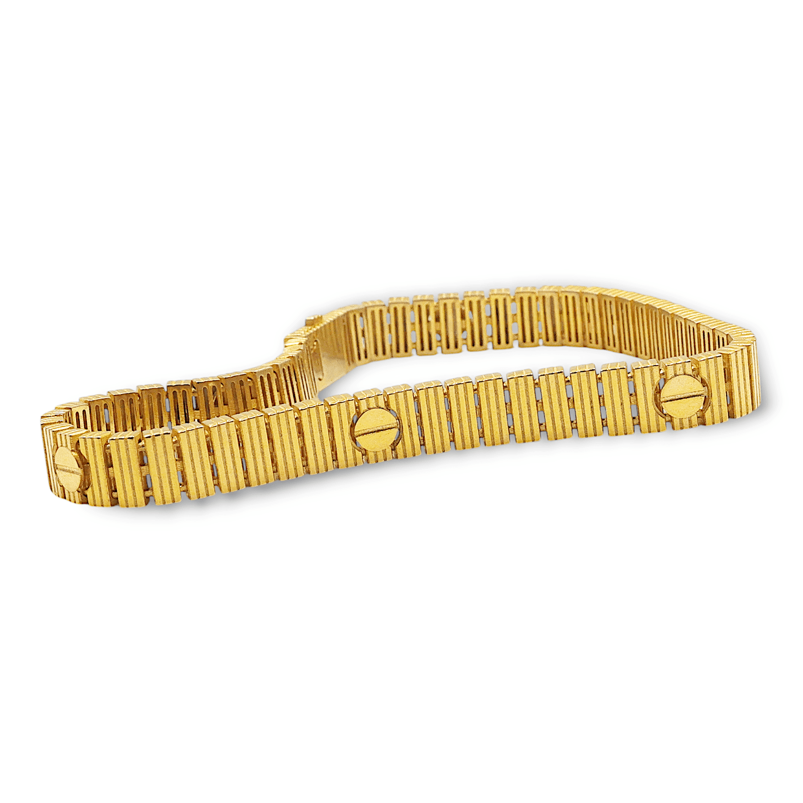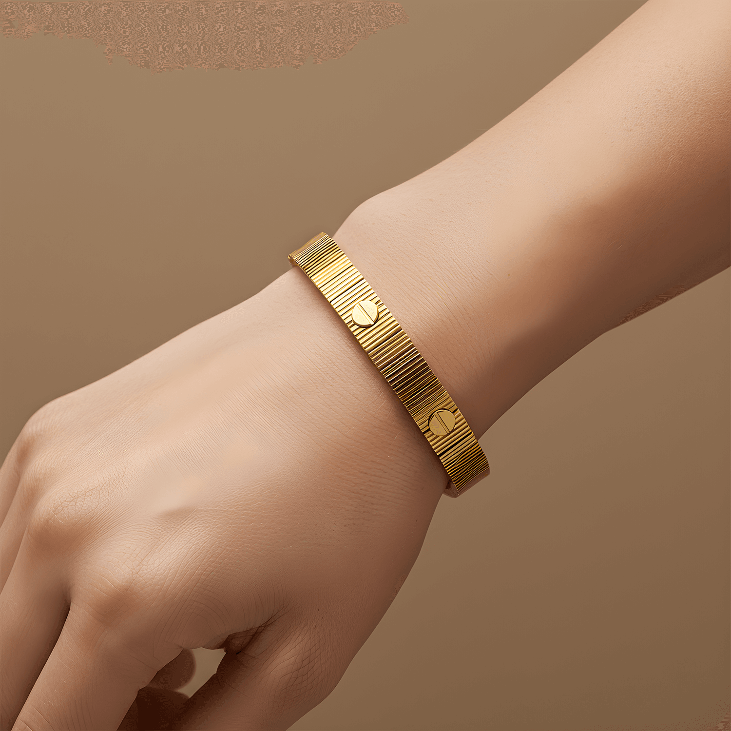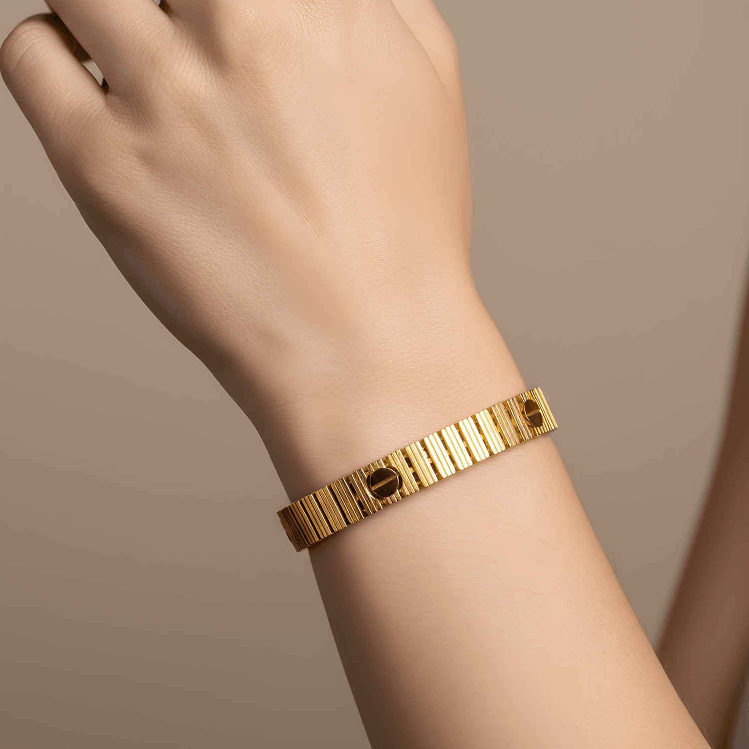Modern lüks stilin en ikonik detaylarından biri olan vida formu, bu özel tasarım bileklikte güçlü ve zamansız bir duruşla hayat bulur.